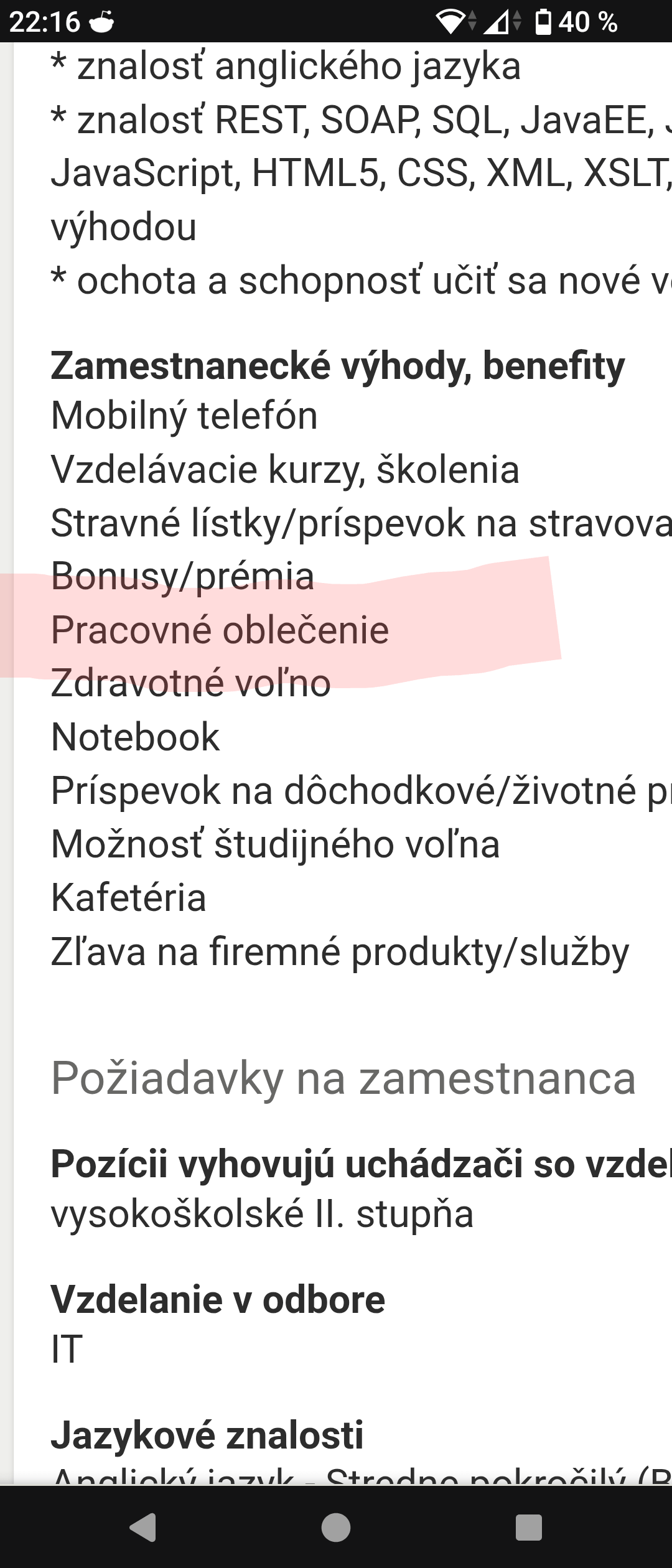 To co za rovnosatu tam nosia. Este tam chyba “moznost pracovat aj cez vikend”.