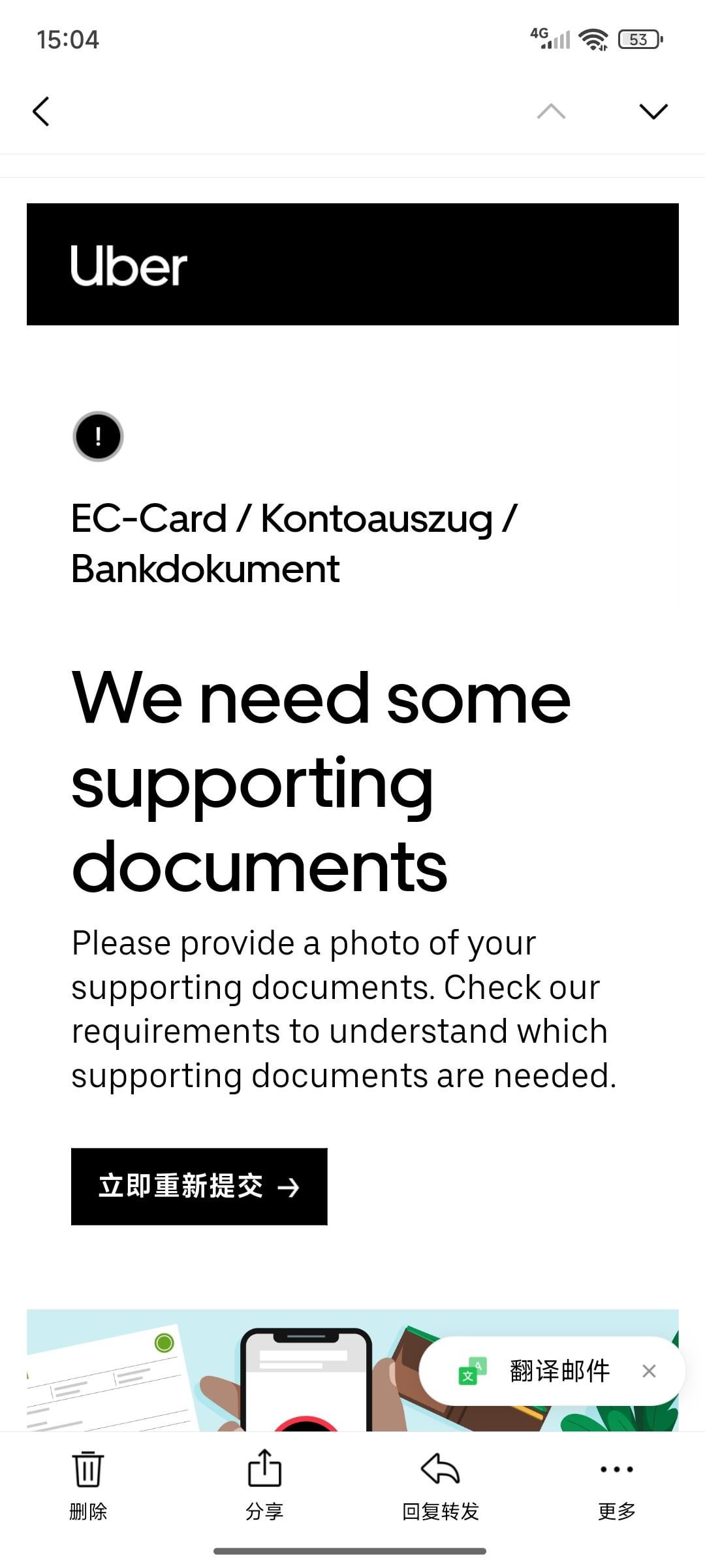 I am stuck at the last few steps of the registration and the customer service can’t provide me with any help, for example, I now need to submit an EC-Card / Kontoauszug / Bankdokument,But I have submitted photos of bank transfers and cards many times,I can only get the following reply every time. Even when I ask the customer service, they cannot tell me what is wrong. The photo I provided has my name iban and bic on it. What exactly does he want me to submit?and i also can’t contact with fleet partner,Because there is no contact information🌚🌚