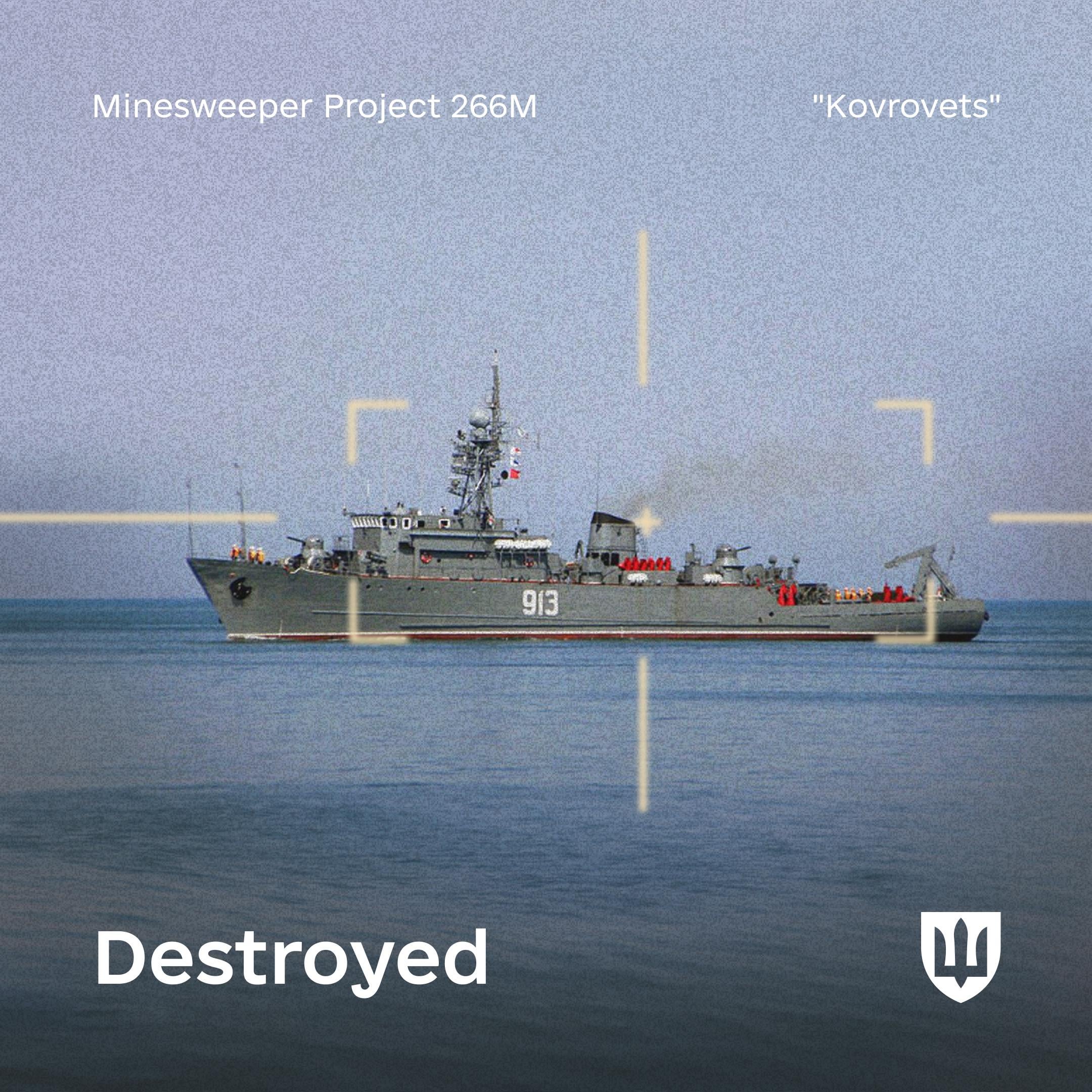 Defense of Ukraine: Another bad day for the russian Black Sea Fleet. Overnight, Ukrainian defenders destroyed a russian minesweeper Project 266M “Kovrovets” Great job, warriors!