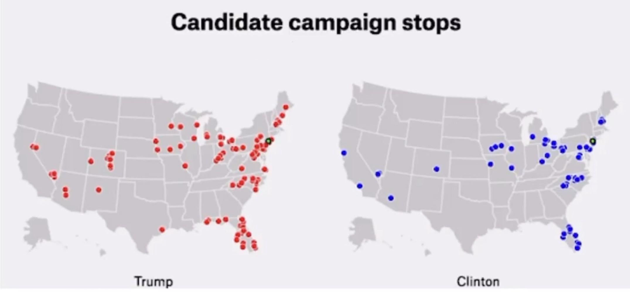 Campaign Stops By Trump and Clinton From September 1st to Election Day in 2016