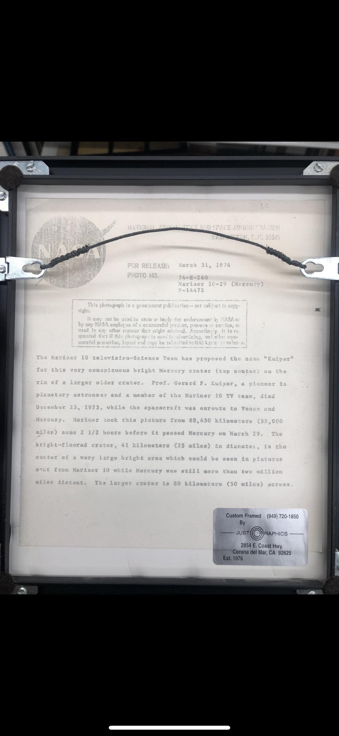 It’s just a cheap reprint. NASA photos had either red or blue serial numbers on them.