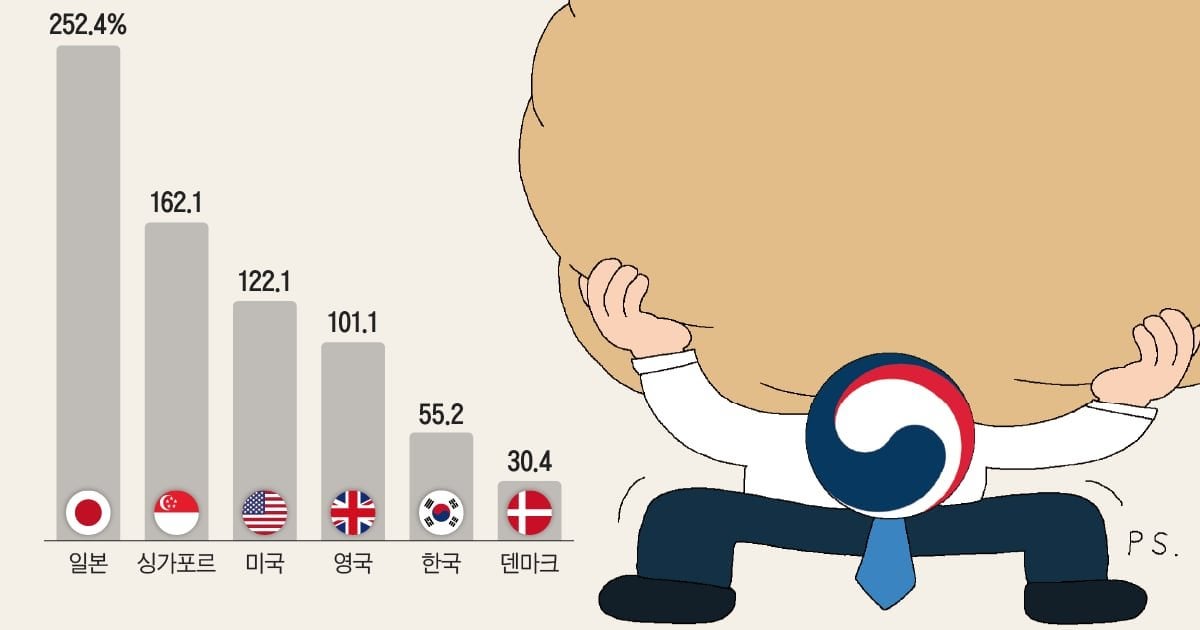 >Last year, Korea’s government debt-to-GDP ratio was lower than that of the G7 countries like Japan (252.4%), the U.S. (122.1%), and Germany (64.3%). But considering Korea’s status as a non-reserve currency country, difficulties may arise in the future. Fitch, an international credit rating agency that previously viewed Korea’s fiscal health positively, noted at the end of last month that the country’s national debt had risen rapidly and surpassed 50% in a short period. As a result, South Korea’s fiscal situation is no longer seen as a positive factor in its sovereign credit rating evaluation.