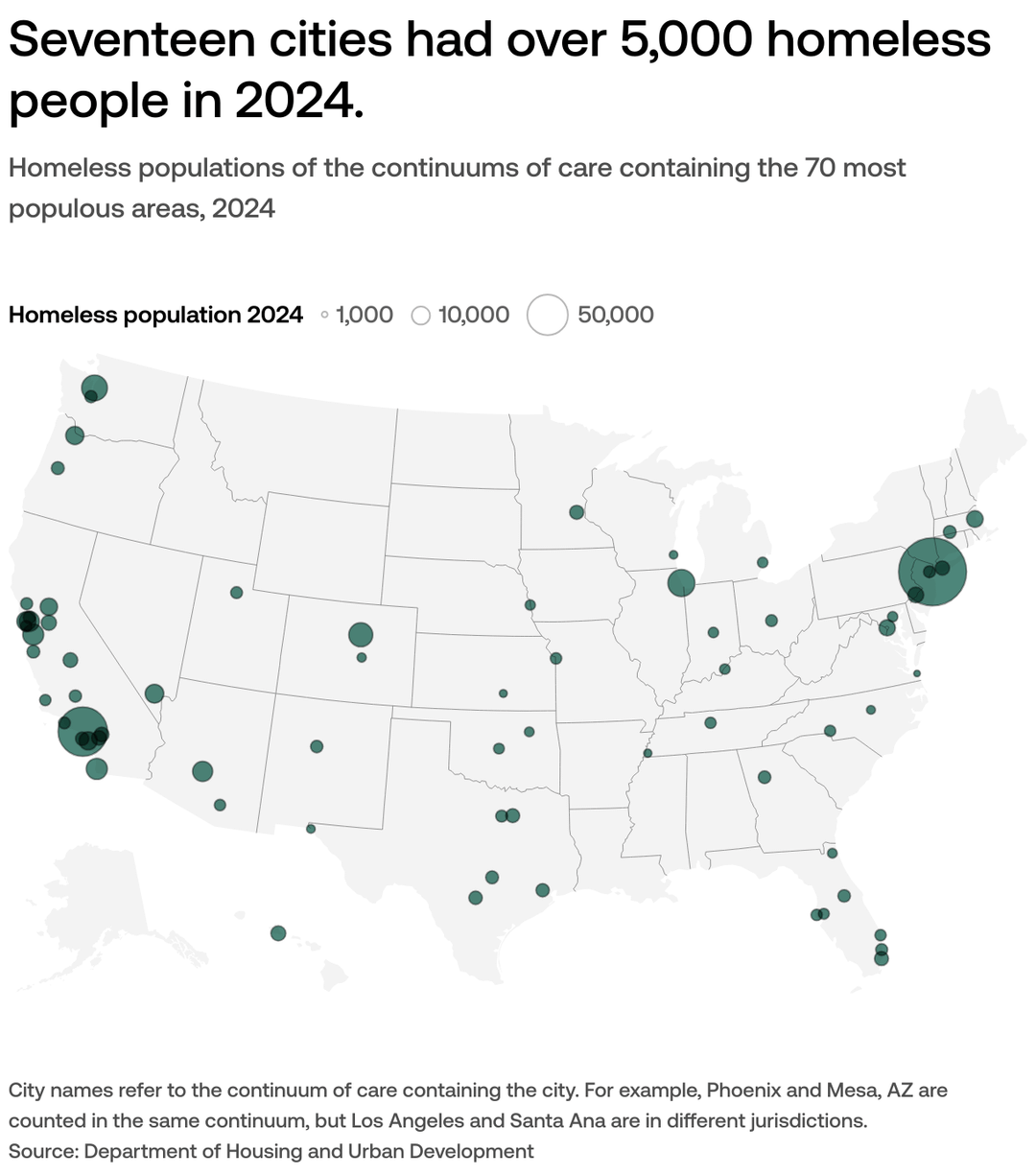 Isn’t that also depending on total population and population density? Homeless will move to cities because they can find better opportunities in a city than in a village out of nowhere in mid west.