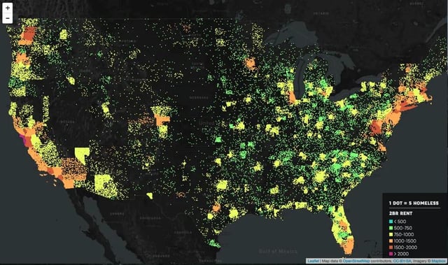 6. This map has so much regional variation because [homelessness is a housing problem](https://homelessnesshousingproblem.com/), and homelessness rates are caused (exclusively) by **high rents and low vacancy rates**. This is a damn-near universal academic consensus among researchers: they’re homeless because *there aren’t enough homes*.