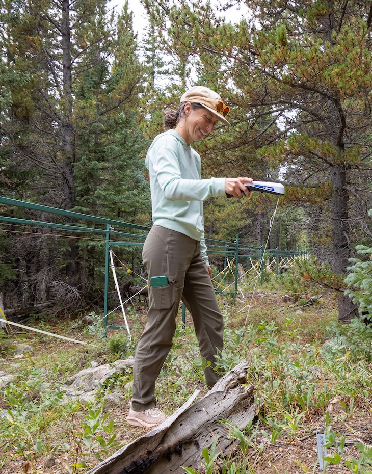 Parsons is a geography and environmental sciences master’s student at CU Denver and will graduate this December. Her thesis project is a study funded by the National Science Foundation (NSF) to better understand how changing snowfall, which could diminish or start later in the season in the coming years due to climate change, will impact subalpine ecosystems.
