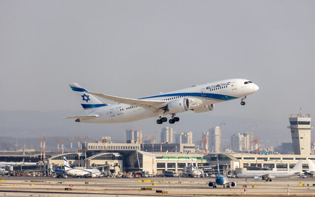 An El Al flight takes off at Ben Gurion Airport, outside of Tel Aviv, August 14, 2025. (Yossi Aloni/Flash90)
