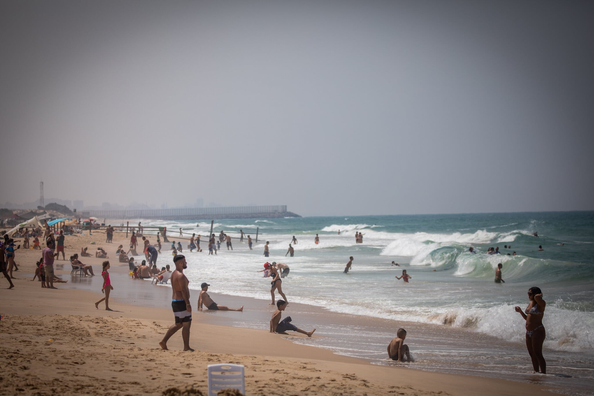 With waves lapping at the shore and umbrellas flapping vigorously in the wind, Zikim beach seemed the picture of serenity on Tuesday.