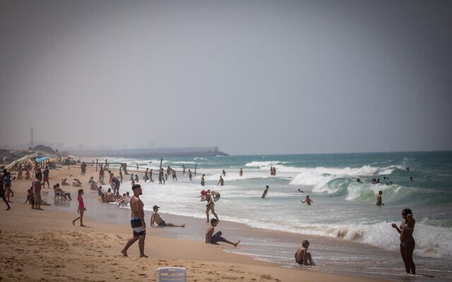 People at Zikim beach, southern Israel, on August 29, 2020. (Yonatan Sindel/Flash90)