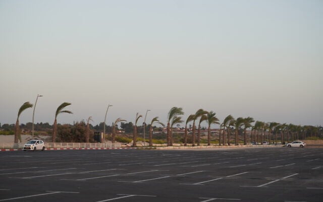 The renovated parking lot at Zikim Beach in southern Israel on October 21, 2025. (Charlie Summers/Times of Israel)