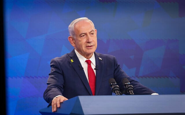Prime Minister Benjamin Netanyahu holds a press conference at the Prime Minister’s office in Jerusalem, September 16, 2025. (Marc Israel Sellem/POOL)