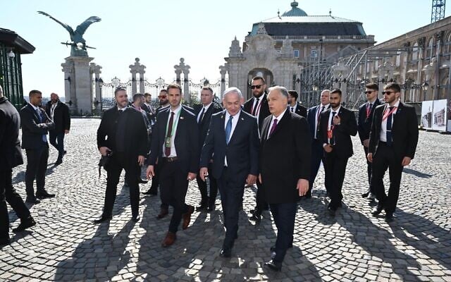 Prime Minister Benjamin Netanyahu (left) is hosted by Hungarian Prime Minister Victor Orban in Budapest, Hungary, April 3, 2025. (Avi Ohayon / GPO)