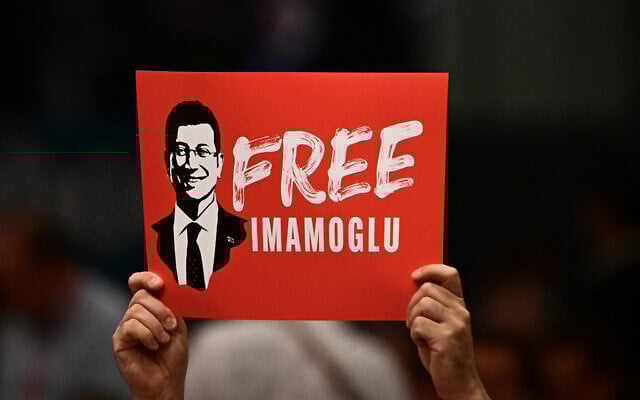 He added that the Istanbul prosecutor’s office “recently orchestrated the arrest of the mayor of Istanbul merely for daring to run against Erdogan,” referring to Ekrem Imamoglu, who was detained in March.