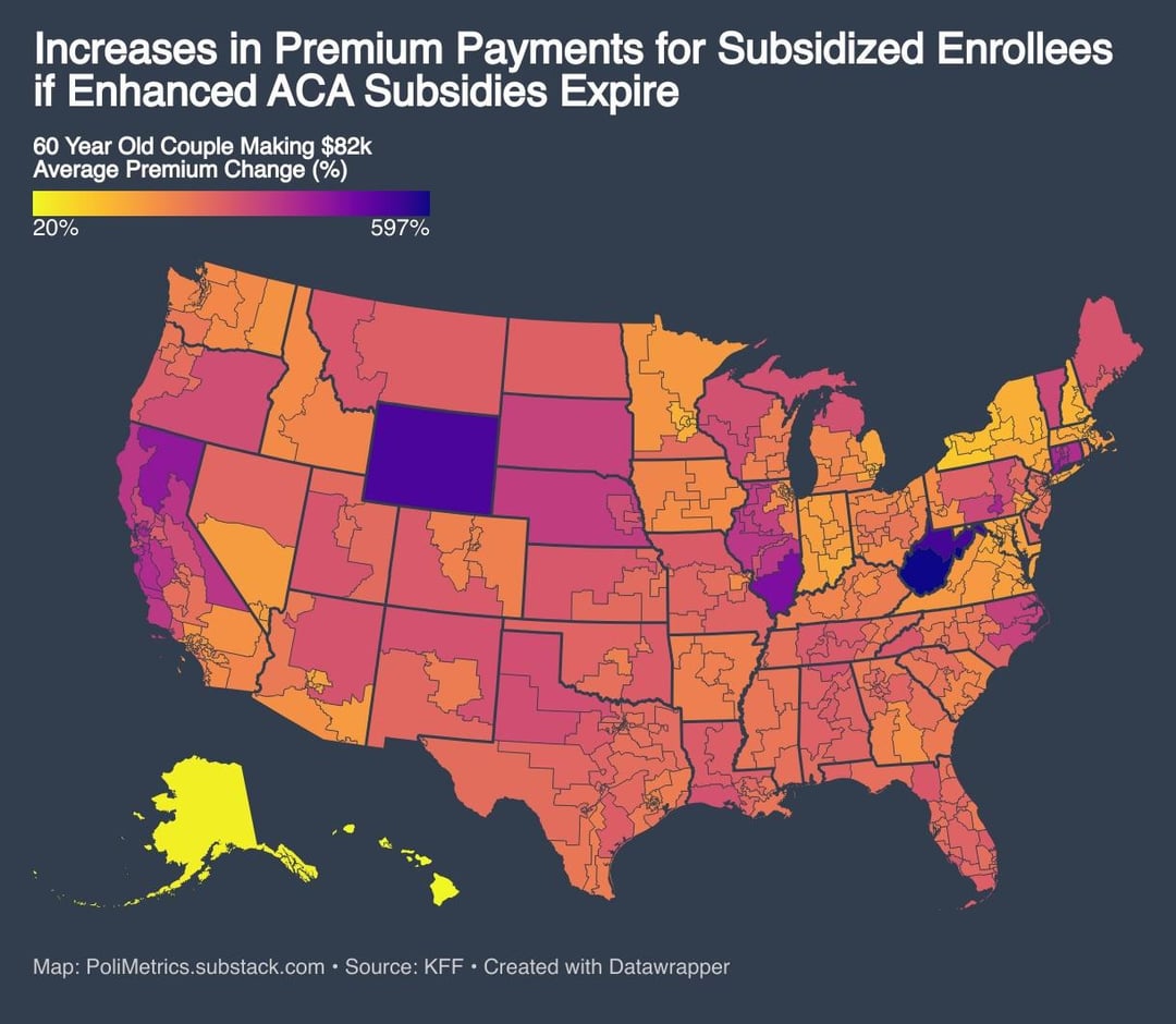 From my blog, see link for full analysis: https://polimetrics.substack.com/p/enhanced-obamacare-subsidies-expire