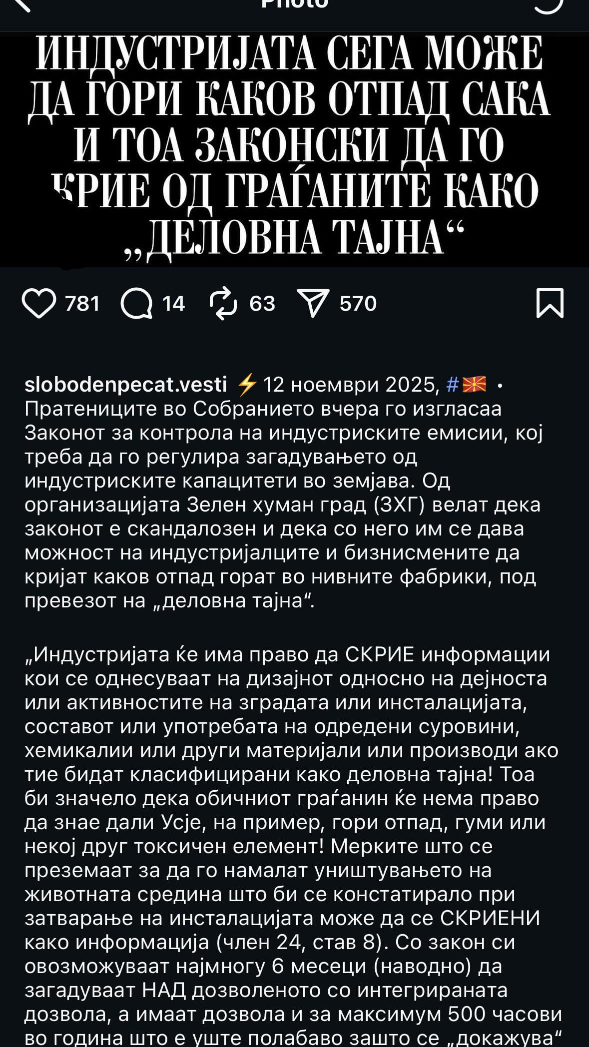 Jas mislam deka drzavata do tolku nema pari i e siromasna do stepen so ne moze da go prekine uvezuvanjeto otpad i taka ke ne dotepa site.
