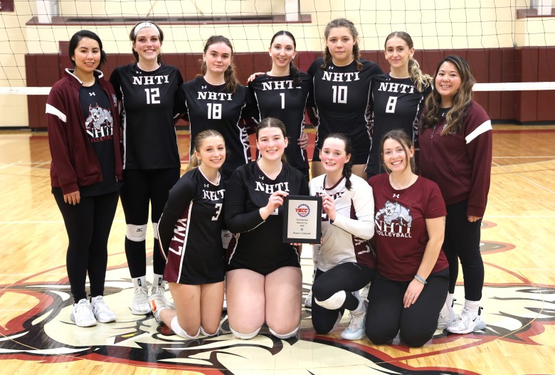 NHTI’s women’s volleyball team finished runner up in the Yankee Small College Conference championships. Credit: NHTI Athletics / Courtesy