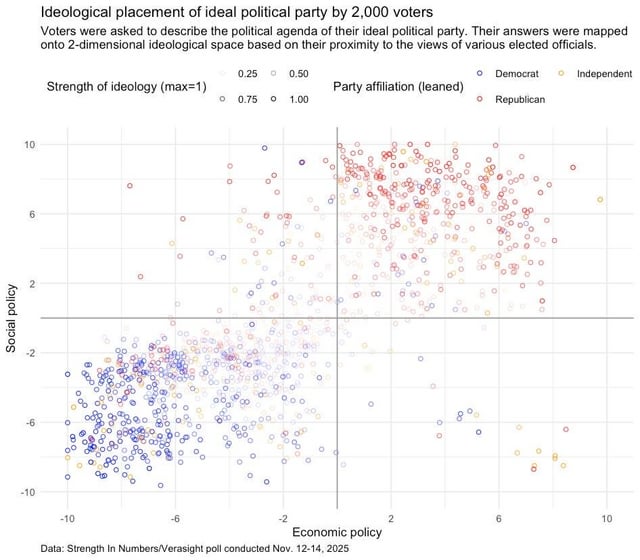 Association between ideological language and modeled ideological position among American voters, based on open-ended responses detailing respondents’ ideal political party
