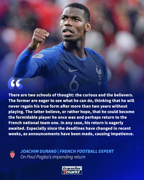 But Pogba will aim to revive his career when he joins Monaco and he will feature in the Champions League after the principality finished third last season. The midfielder will play in Ligue 1 for the first time in his career and join a talented array of youngsters at Monaco but will Pogba enjoy a successful return? “There are two schools of thought: the curious and the believers. The former are eager to see what he can do, thinking that he will never regain his true form after more than two years without playing. The latter believe, or rather hope, that he could become the formidable player he once was and perhaps return to the French national team one. In any case, his return is eagerly awaited. Especially since the deadlines have changed in recent weeks, as announcements have been made, causing impatience.”