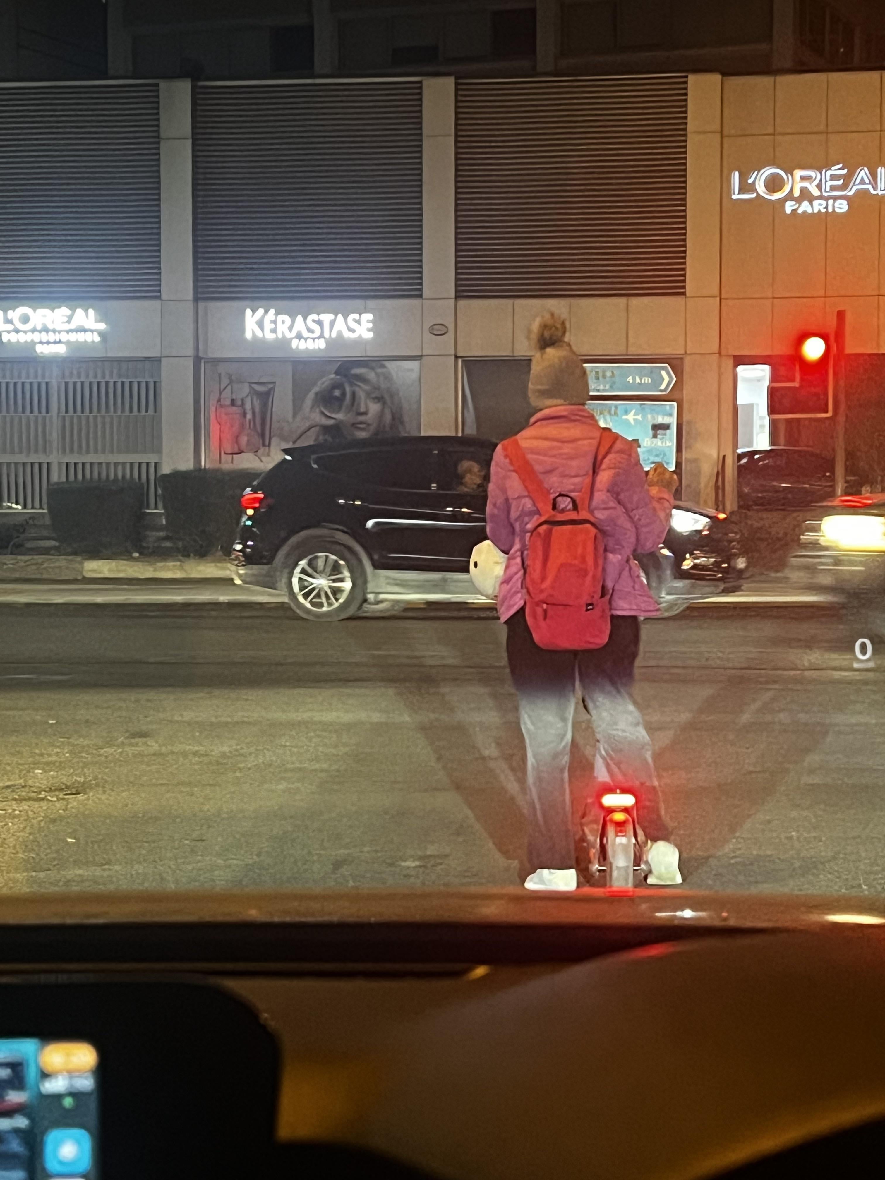 8. Do you mean the scooter, the helmet, or you at a red traffic light with your phone in your hand taking photos?