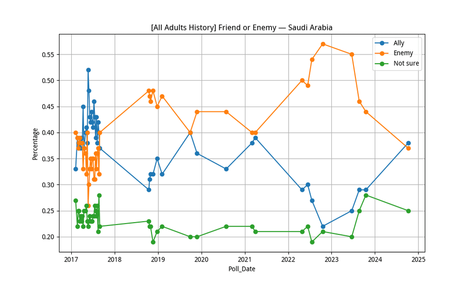 Data Source: [YouGov](https://today.yougov.com/topics/international/trackers/friend-enemy-saudi-arabia)
