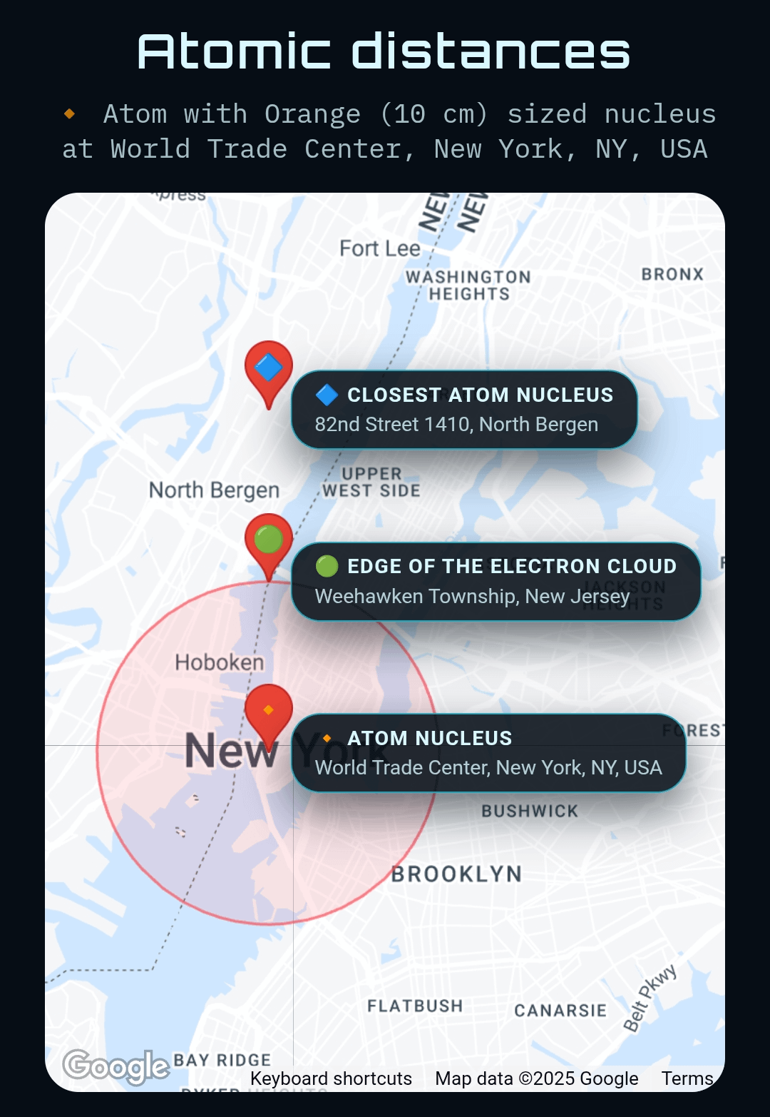 Relative Distance (distance.mvz.cl) takes scales that are normally impossible to visualize, such as astronomical distances, evolutionary timelines or atomic sizes, and places them on real locations on Earth.