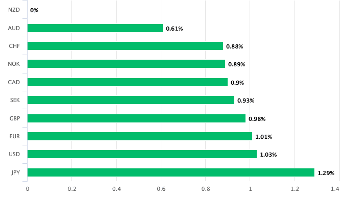 Above: NZD is outperforming all G10 peers on Wednesday, Nov. 26.