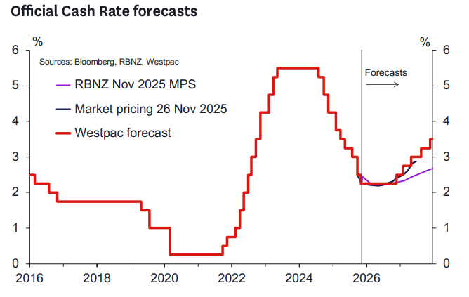 “The RBNZ’s forecasts imply a first OCR hike around the middle of 2027, with the OCR to gradually move up towards 3% (the RBNZ’s estimated neutral rate) by the end of 2028,” says Kelly Eckhold, Chief Economist at Westpac.
