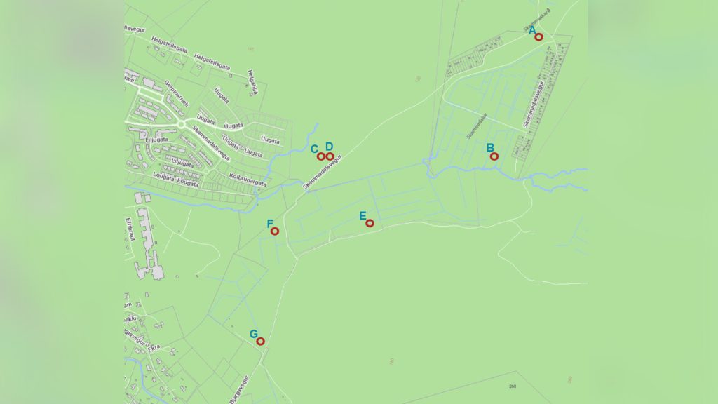 Sites of boreholes to be drilled at the Reykir area in Mosfellsbær, Iceland (source: Veitur)