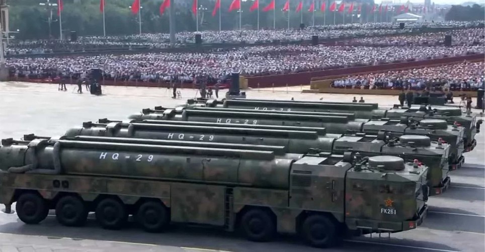 Traditional ICBMs were on display, including the newly unveiled DF-61, as well as older systems such as Dongfeng-31 and DF-5C. China showed components of what could be called its nuclear triad: air-launched, land-launched, and submarine-launched strategic weapons.