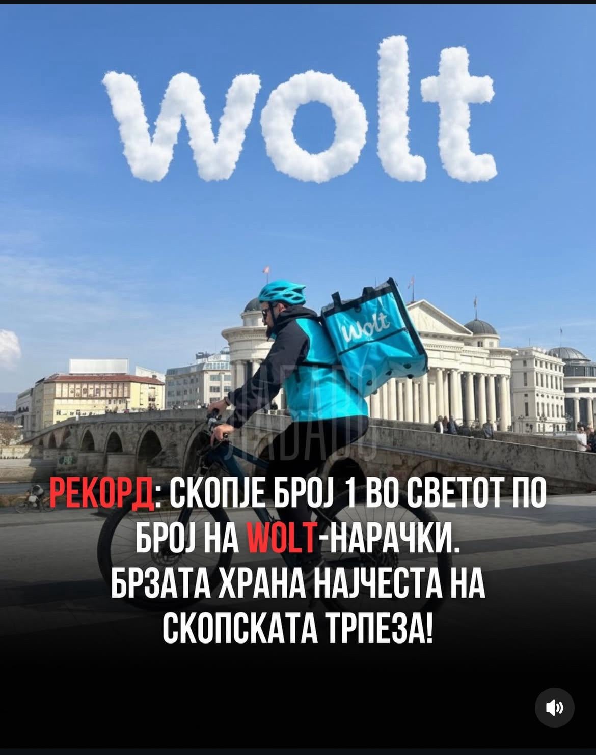 Скопје бил број 1 по нарачки во првиот месец кога wolt полна со работа. Во моментот кога се рекламираа на секој билборд, даваа 40% попуст на нарачките, бесплатна достава….