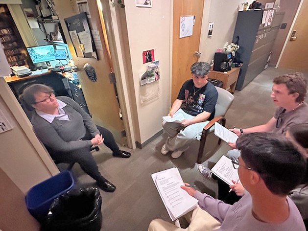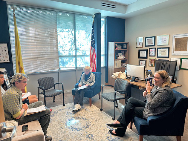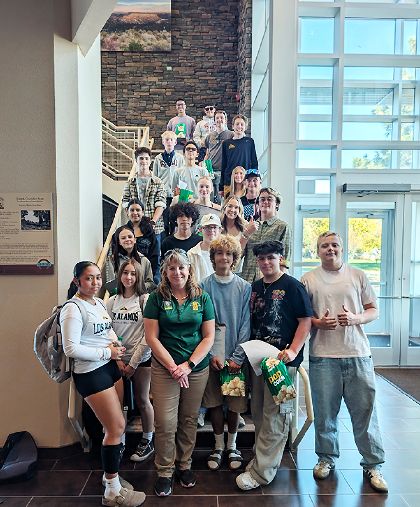 Los Alamos High School English Teacher Lori Thompson, front row center, with students from her Sports Lit class after they conducted interviews in early November at the Justice Center. The students will be writing articles on their interviews. Courtesy/LAPS