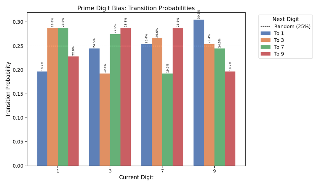 1. The Context: We are often told that prime numbers behave pseudo-randomly. If you look at the last digit of a prime (in base 10), it can be 1, 3, 7, or 9. You’d expect a 25% chance for each, and a 25% chance for the next prime to end in any digit.