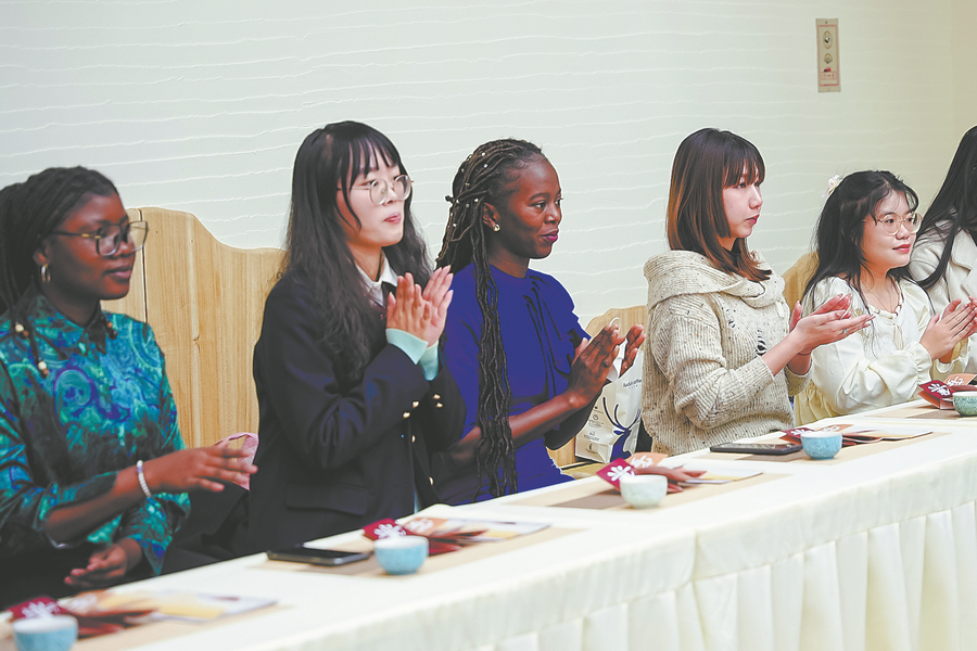 Guests from countries including Azerbaijan, Vietnam and Thailand join a cultural exchange seminar during the Weaving Rhymes of China and Serbia: Two Carpets in Harmony and Resonance exhibition in Beijing in late November. CHINA DAILY