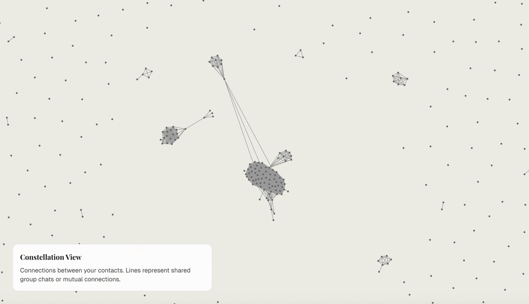 Made a super simple electron app to visualize all of my contacts based on how close they are to me, how much we talk, who initializes the conversations more, what we talk about etc….!