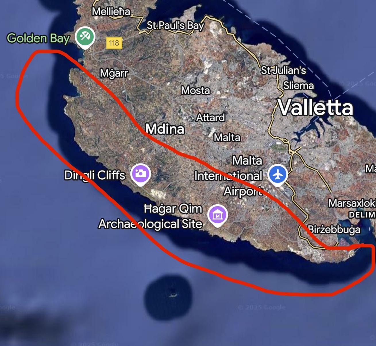 zoom in, find cliffs, drive there and walk there. the west is the only bearable side of Malta. Be mindful of hunting tho, its a bit like a warzone and they will not care if you’re walking closeby – they will shoot their guns.