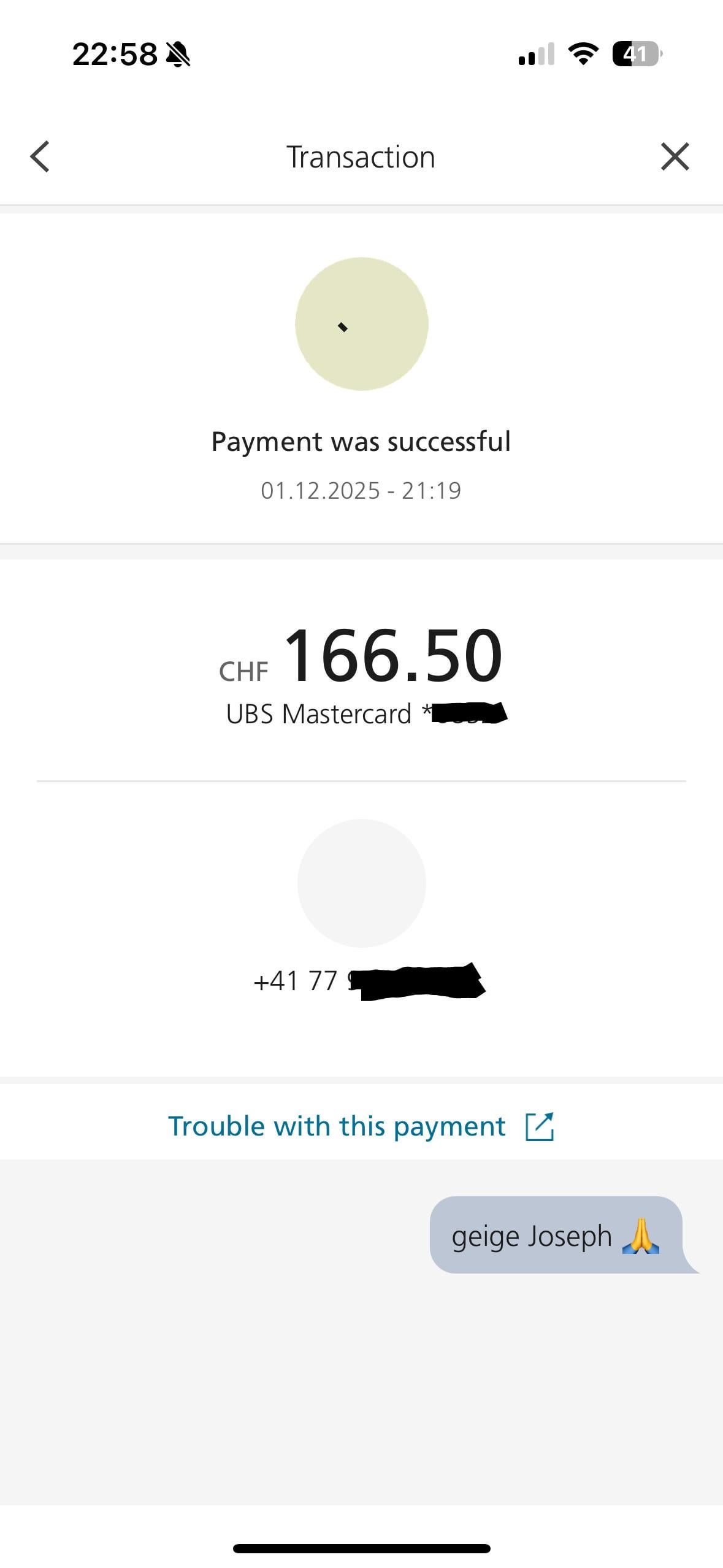 This is the UBS twint app, mine looks exactly identical. Check if you received the money or not