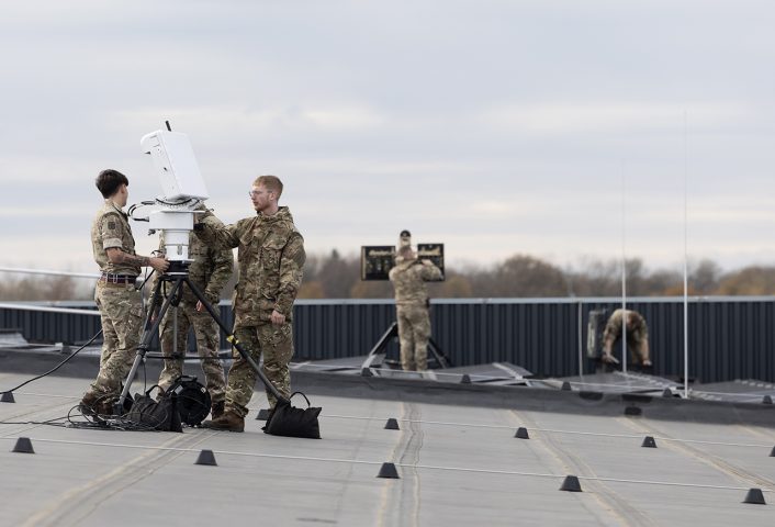 Members of 34 Squadron RAF Regiment, 2 Counter – Unmanned Aerial Systems (2 C-UAS) setting up C-UAS equipment in Belgium after a request by Belgian authorities for assistance in dealing with drone incursions. (Image credit: Cpl Adam Fletcher – RAF/Crown Copyright)