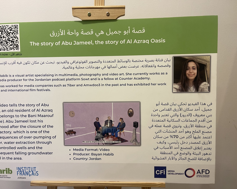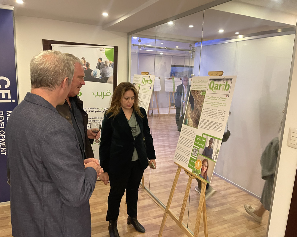 The exhibition was held at CFI’s office in Amman, attended by the agency’s global director Emanuela Tolan, AFD’s regional director Yves Gescoro, QARIB programme director Henrik Erhnäs, QARIB editor-in-chief Nada Abdel Salam, representatives of various Arab media outlets, several media donors and members of the QARIB team in Jordan.