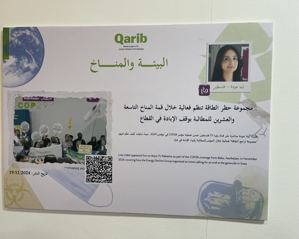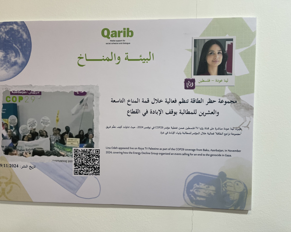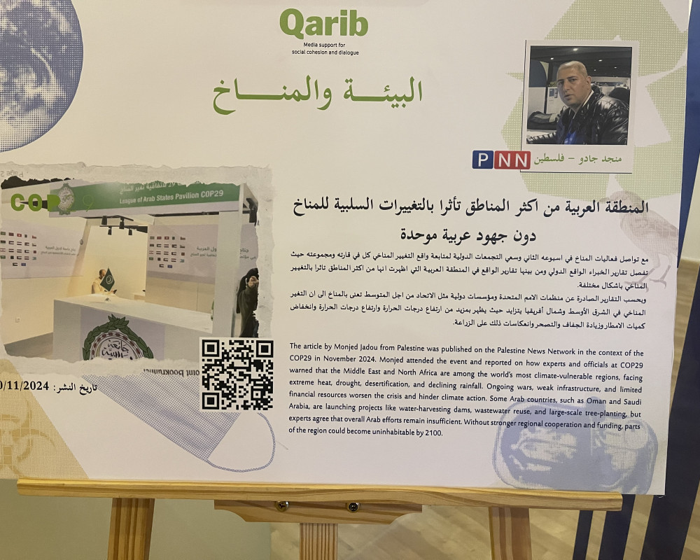 Henrik Ahrens, director of the QARIB media-development project, told PNN that CFI is hosting the exhibition to highlight climate and environmental productions created within the programme across four Arab countries. He said the goal is to inform audiences in Jordan, Palestine, Lebanon and Iraq about the importance of protecting the climate and countering negative environmental impacts.
