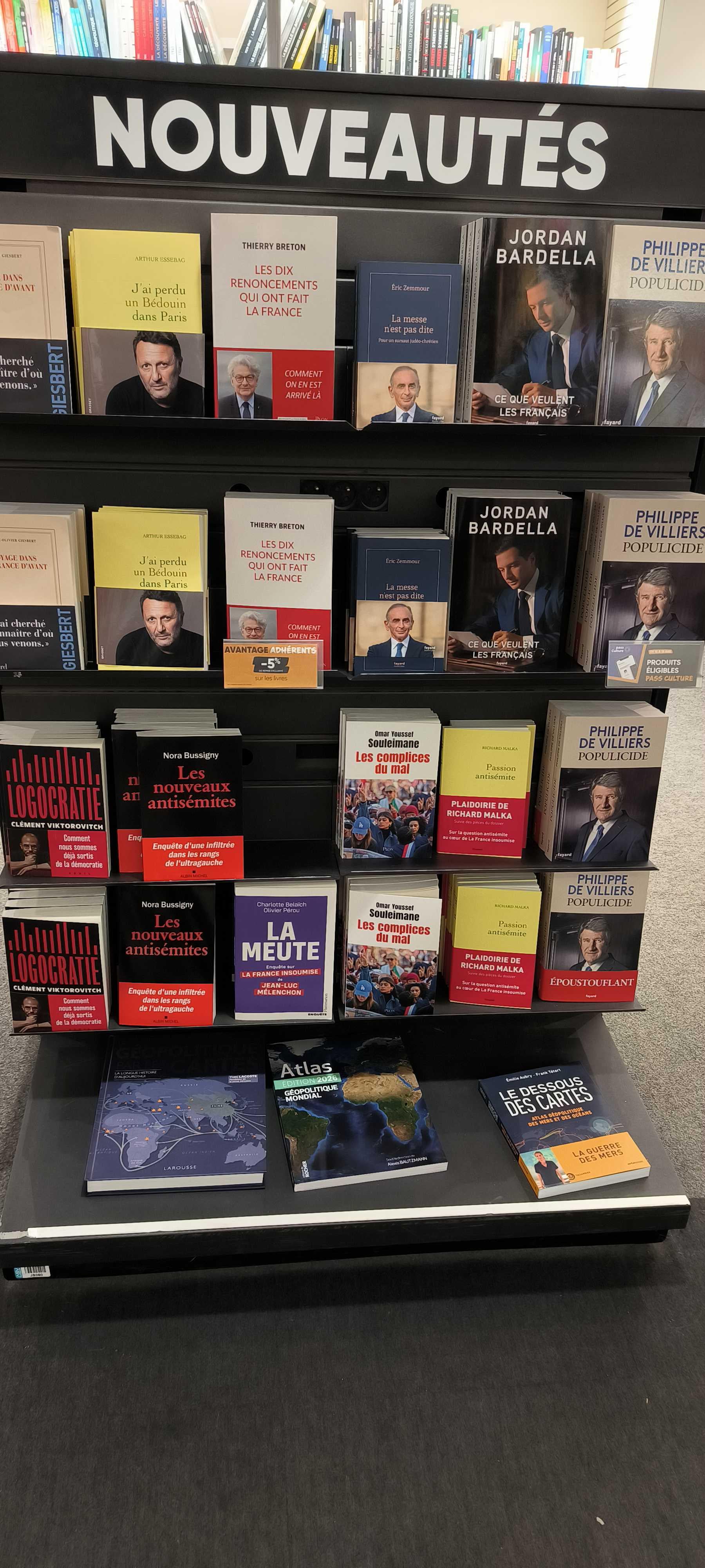 Latter-Ingenuity6709 on December 6, 2025 4:13 pm A oui mettre en avant des livres de droite ou extrême droite dans des magasins qui appartiennent aux financeurs de ces mêmes partis et ces mêmes personnes . Pour Berdella , c’est un moyen détourné de le financer sa prochaine campagne ( 700.000 euros ) . Aux USA il créent une cripto , en France on écrit des bouquins .