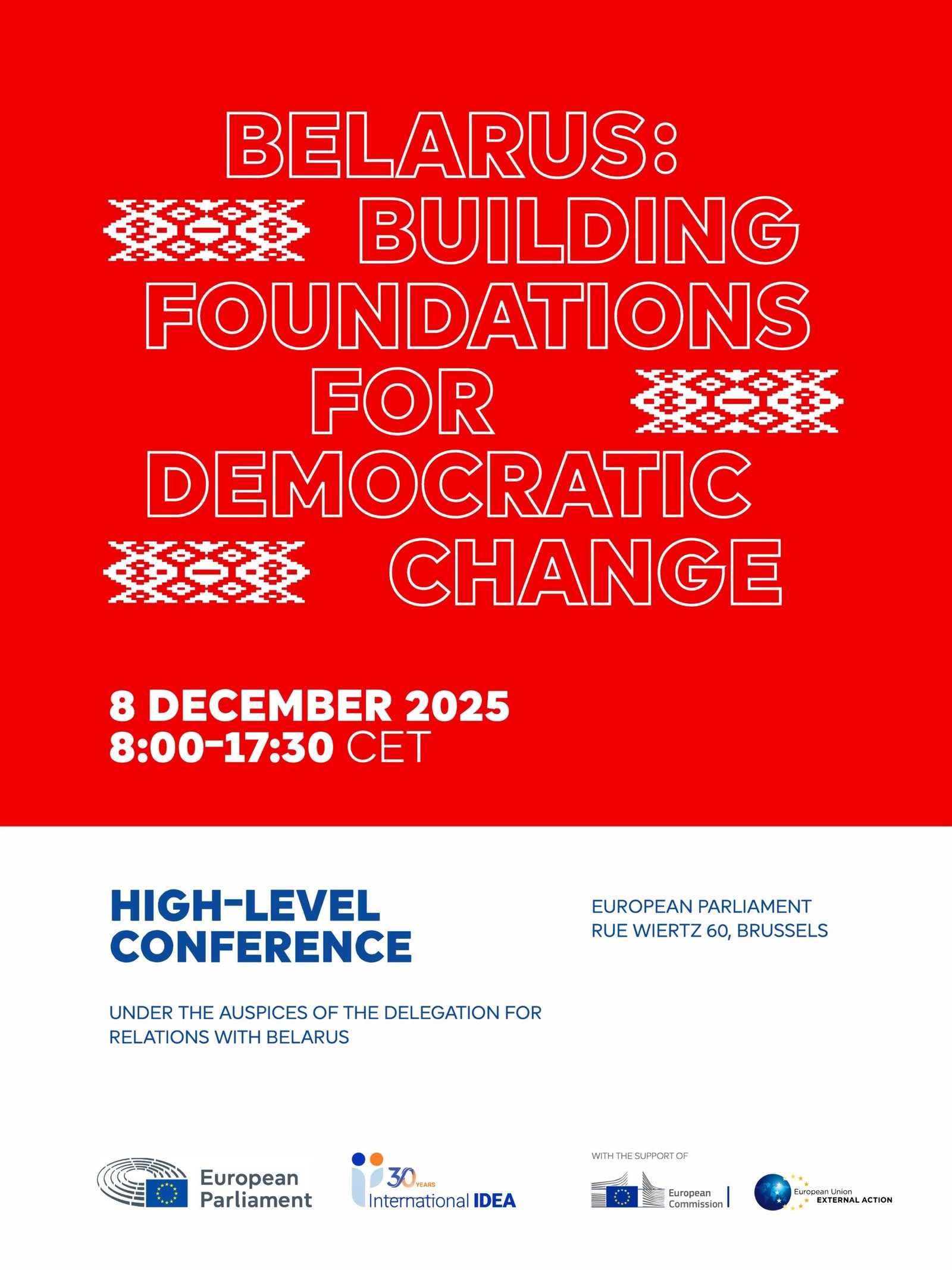 The high-level conference is a collaboration between the European Parliament and the International Institute for Democracy and Electoral Assistance (International IDEA), with the support of the European Commission and the European External Action Service (EEAS). It is the fifth in a series of events held over the past two years, focusing on the reform package developed by Belarusian democratic actors and the international community’s efforts to support the Belarusian people.