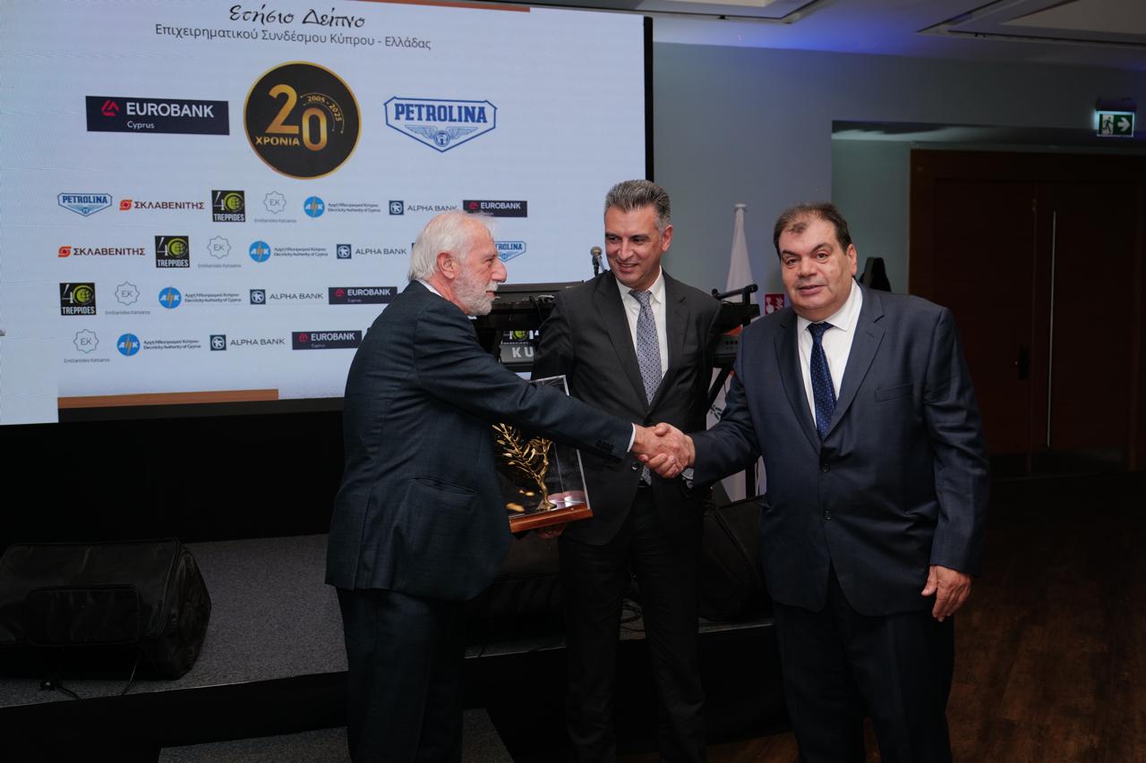 During the dinner, a greeting from President Nikos Christodoulides was read, in which he highlighted the significance of expanding the economic relations of Cyprus and Greece.