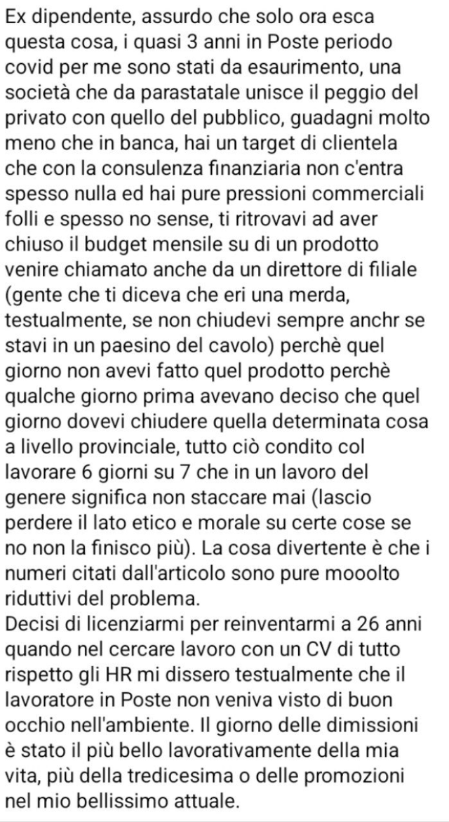 Ho pubblicato questo post perché sono abbastanza indignato. Mi chiedo come sia possibile che noi clienti non siamo mai padroni dei nostri soldi e mi interrogo se queste dinamiche che si creano in queste aziende siamo o meno tossiche per noi clienti. A chi non è mai capitato di ritrovarsi in banca per una cosa e trovarsi davanti un consulente che cerca di intortarti per vendere qualcosa a tutti i costi? Io credo che con i soldi non si gioca e non si può essere vittima di queste dinamiche commerciali. Credo che la polirica debba intervenire a tutela dei correntisti, visti soprattutto gli scandali che ci sono stati in passato che hanno portato lavoratori e pensionati a perdere tanti soldi!