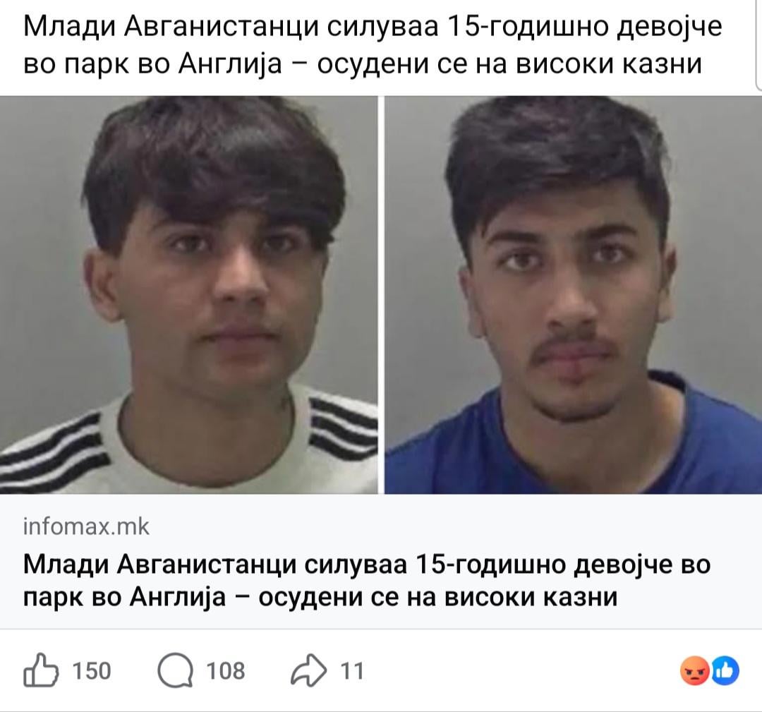 Сите што пишувате дека и кај нас има силувачи, убијци, насилници, силеџии… Да, има, и тоа е огромен проблем, мизогинијата ни е потсвесно всадена на сите и на мажи и на жени. Но, тоа не значи дека треба да го прифатиме ова. Британски вести известуваат дека тука ќе бидат испратени оние кои не можат да се вклопат во нивното општество, оние што се проблематични. Па, сега кажете ми како некој што не може да се прилагоди, ги прифати законите на далеку поздраво општество од нашево, ќе се прилагоди тука? Британија е далеку помоќна од нас, имаат посебни школа за рехабилитација каде што одат, каде ги учат на западните вредности на еднаквост и слобода и пак не им успева, како тогаш нам ќе ни успее кога ни ние тоа не го практикуваме? Се согласувам дека не треба да се гледаат како мнозинство туку поединци, сегде има насилници, но јасно е дека тука нема да ги пратат интелектуалците, образованите, добрата работна сила, секој прифаќа добар човек. Тука ќе бидат пратени тие што ниту матичните земји не ги прифаќа назад.