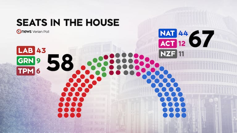 If an election were to be held today, the poll indicates it would be good news for the right bloc of National, ACT and New Zealand First, which forms the current government coalition. They would have 67 seats, easily enough to form the next government.