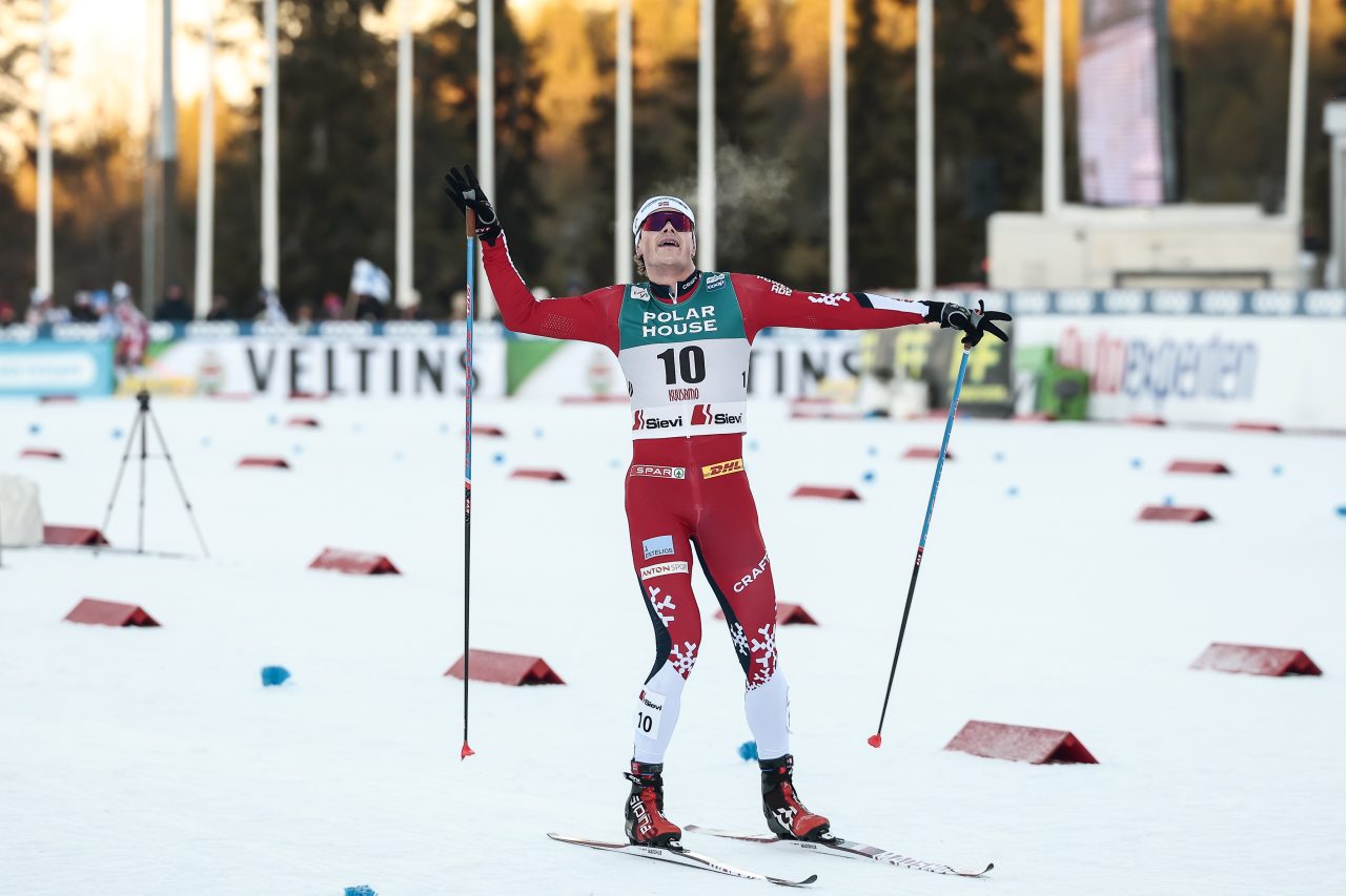 Harald Oestberg Amundsen (NOR) wins the 20 k Mass Start Freestyle during the World Cup opening weekend in Ruka (FIN). (Photo: Modica/NordicFocus)