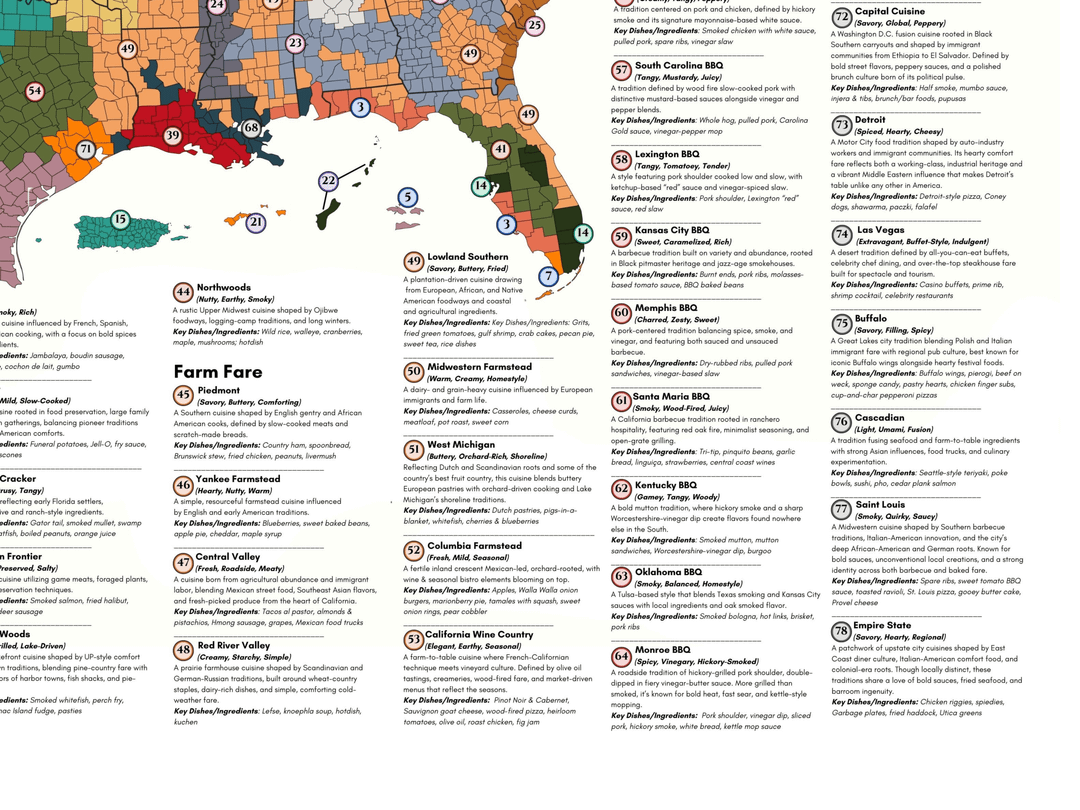 Amazing! Thank you for this. I’ve lived in 5 of the areas listed across the country and found it all to be accurate on the map. My dad was a foodie who loved traveling the US. He passed away last year and looking at this map really made me have one of those “I wish I could show him this” moments.