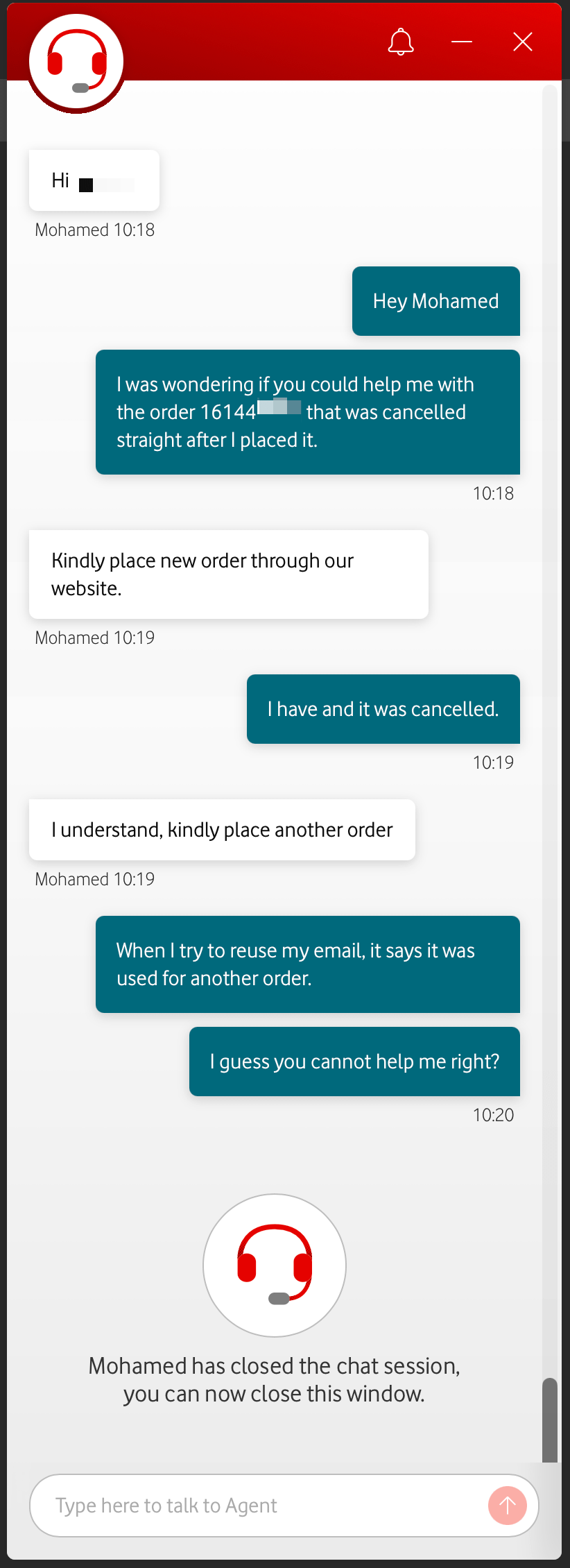 Or in the case of Vodafone, maybe just replace the entire customer support portal with a static page that says “Sorry, fock off (just being honest)”.