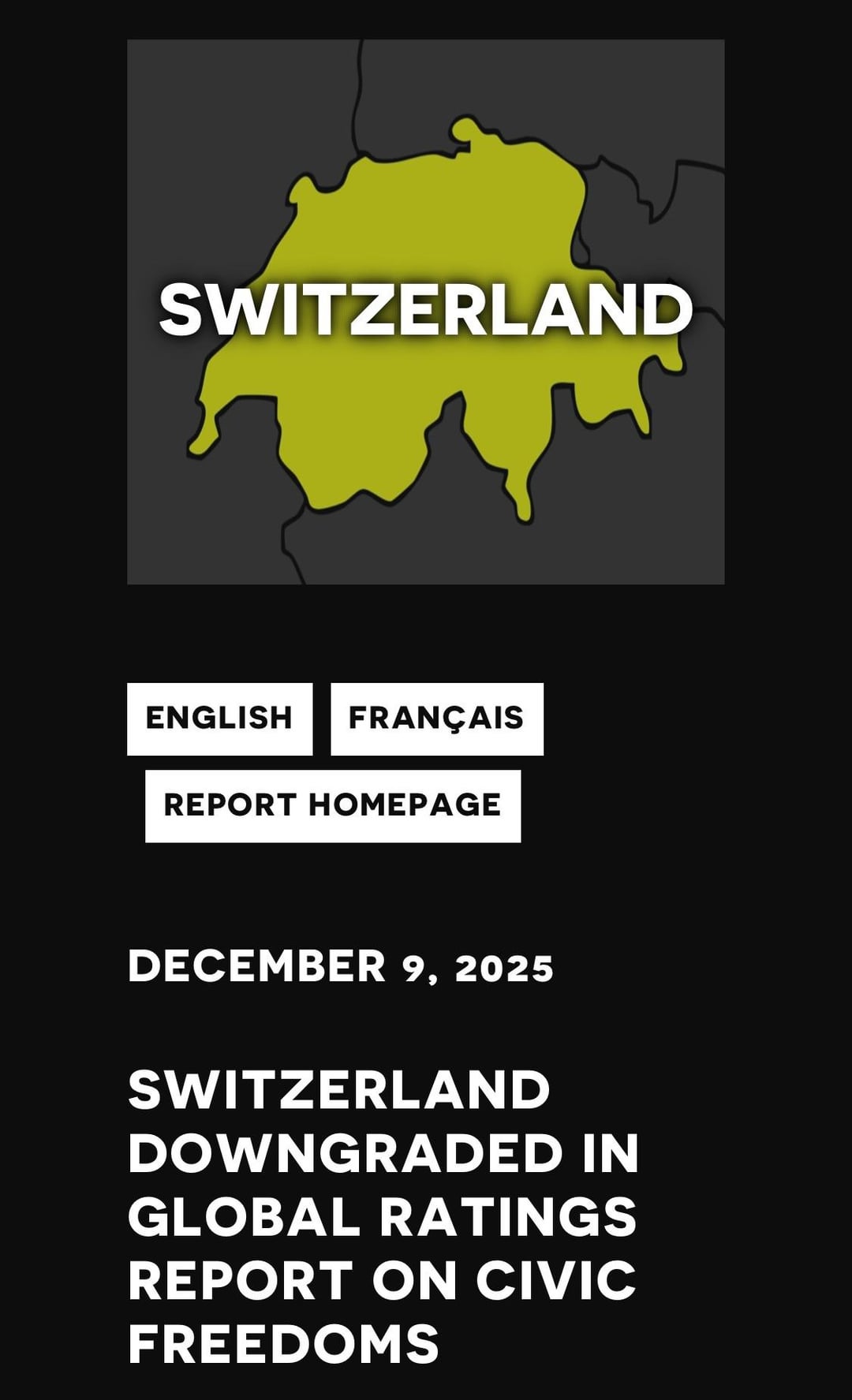 „Switzerland has been downgraded from open to narrowed amid increasing restrictions on civil society activists, journalists and protests. Police met protests against police brutality