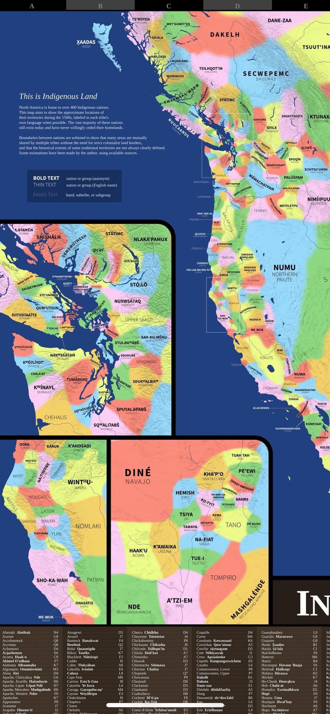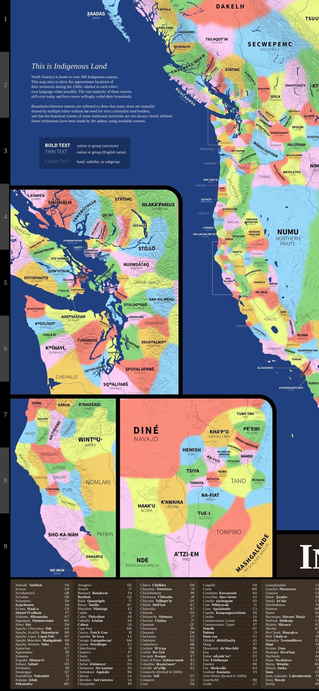 I would love to see this kind of thing alongside a set of high quality illustrations that show some aspects of life in various tribes. Like our view of native Americans historically is generally pretty flat. So illustrations are an interesting way to convey some of the differences in clothing, culture, way of life and so on.