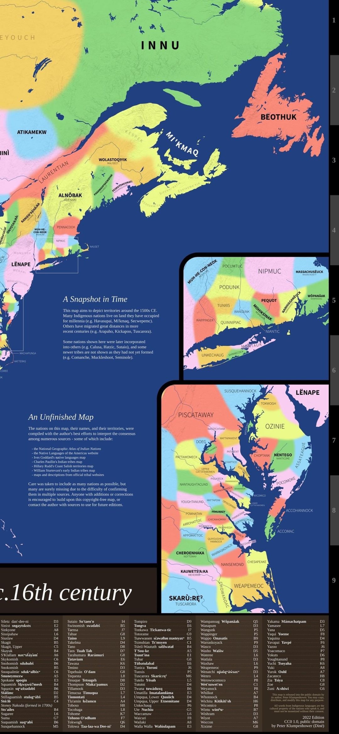 whilst the map does note that the edges are fuzzy, they are still sharp enough to give off the impression of understood borders, and in some cases it just misses the mark entirely, such as the land of the Miami (myaamia) not including their capitol (kiihkayonki, modern day fort Wayne Indiana).